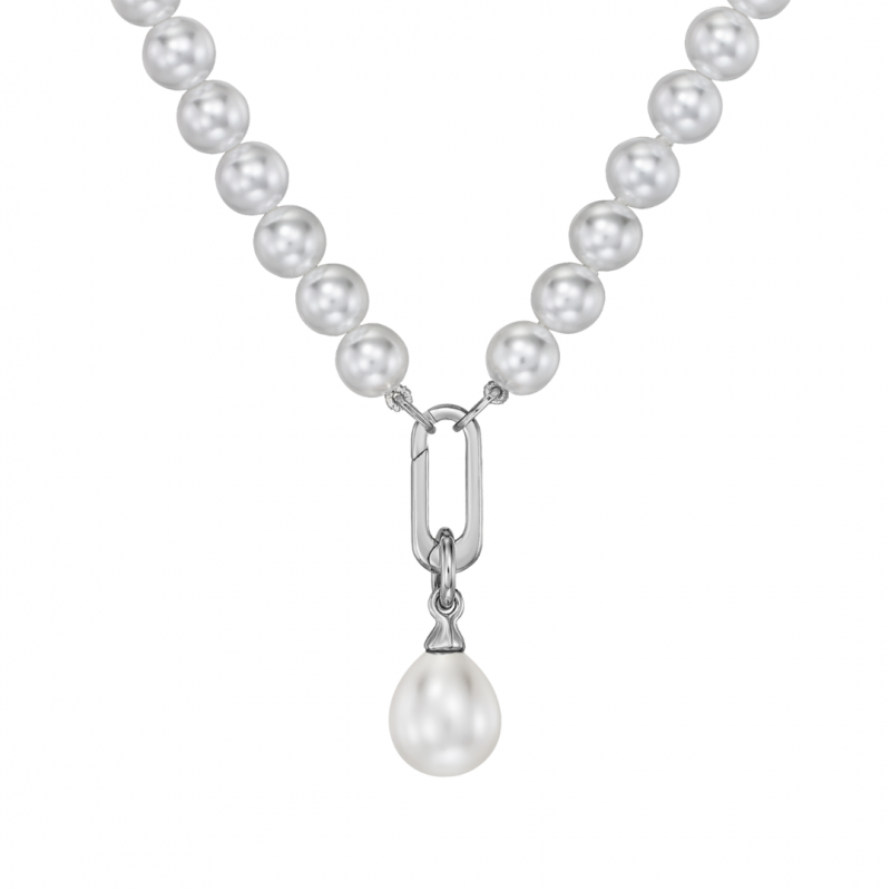 Traveller Parelcollier met Hanger - Parels - 8 mm - Wit - Parel - 12x14 mm - Ovaal - 45 cm - Geplatineerd