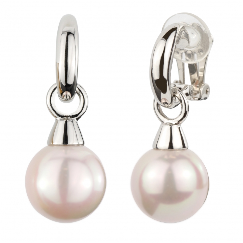 Traveller oorclips Hanger - geplatineerd - 14mm parel roze