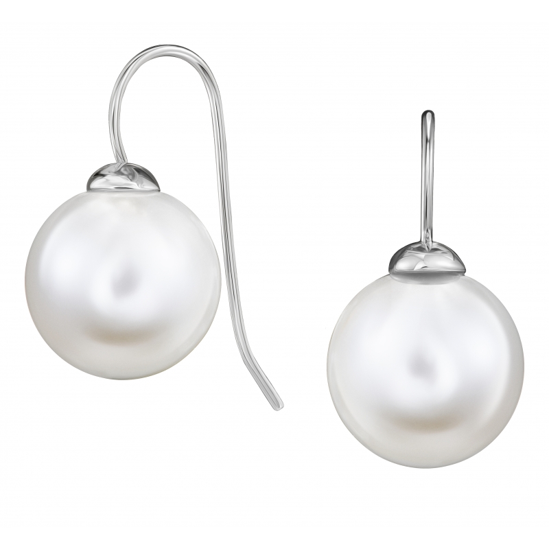 Traveller Oorhangers Haak - geplatineerd - 12mm parel wit
